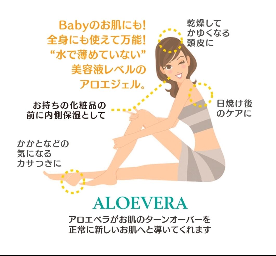 *全成分・・・アロエベラ葉水、アロエベラ液汁、乳酸桿菌/アロエベラ発酵液、BG、(アクリレーツ/アクリル酸アルキル(C10-30)クロスプリマ―、AMP、クエン酸、カプリリルグリコール、フェノキシエタノール